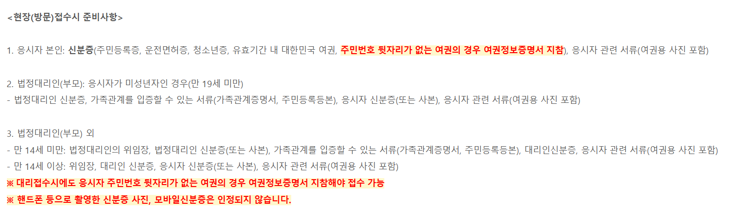 현장 접수를 할때에는 신분증이 반드시 필요합니다.