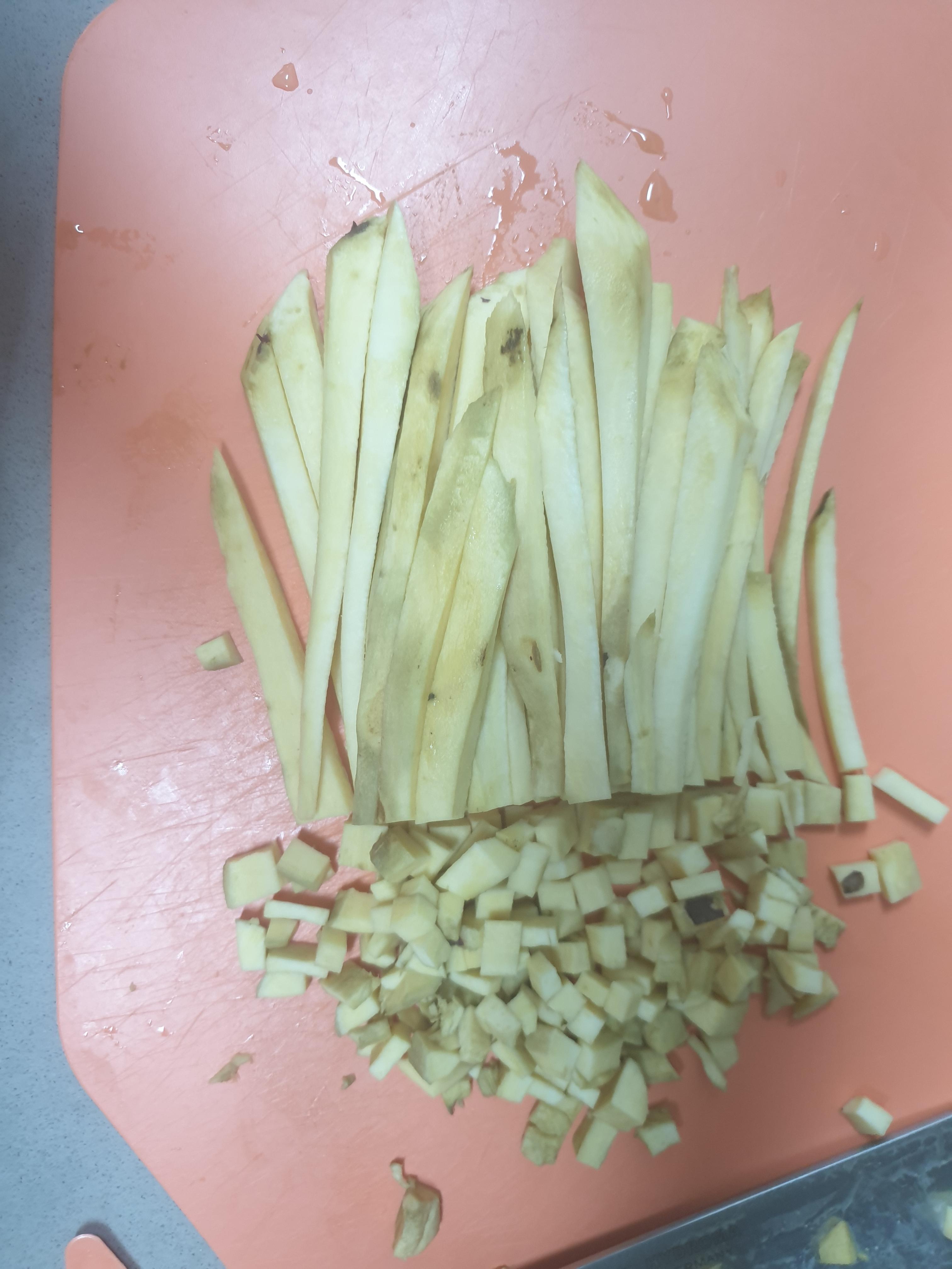 채 썰은 후 잘게 깍둑썰기 해주세요~