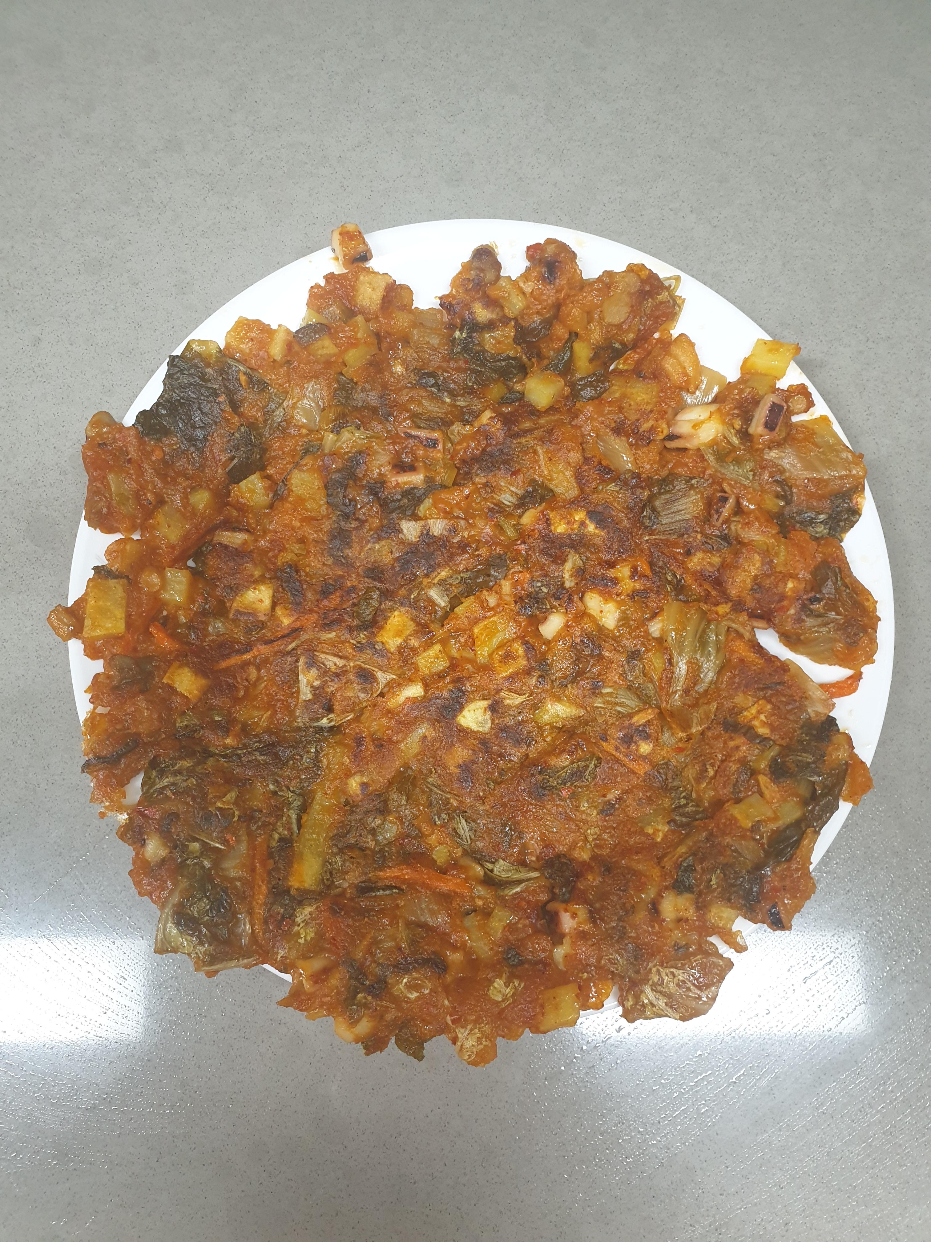 오징어와 김치와 고구마 그리고 채소들이 어울려서 바삭한 반죽으로 바삭한 오징어 김치 부침개를 만들어 봤습니다.