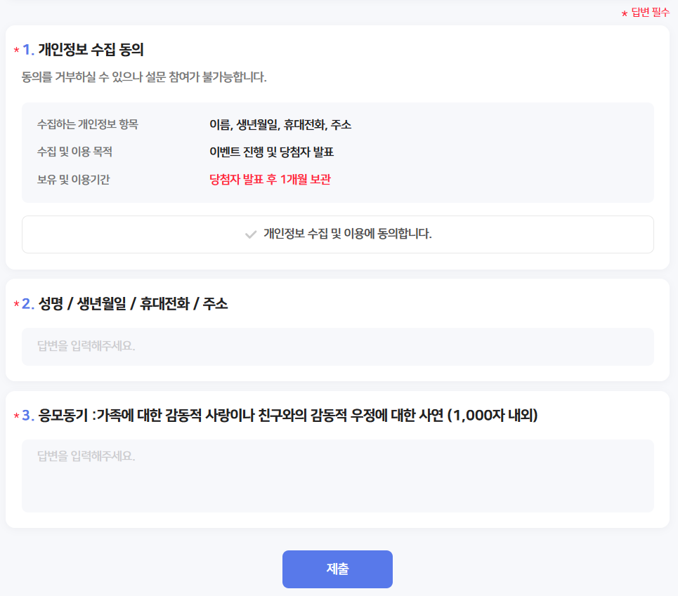 현재 응모기간이라서 많은 분들이 "응모주제 : 가족에 대한 감동적 사랑이나 친구와의 감동적인 우정" 로 사연을 올려주셔야 합니다. 1000자 내외의 글이어야 하며 당선이 되기 위해서는 다른 사람에게 감동을 주고 타의 귀감이 될 수 있는지가 심가기준이라고 합니다.