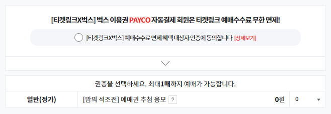 잔여석 일반 예매 선착순으로 됩니다.