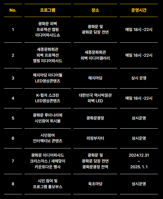 2024 서울라이트 광화문 프로그램 장소 운영시간